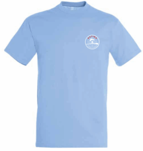 T-shirt bleu ciel , insigne ASTIRA sérigraphié.